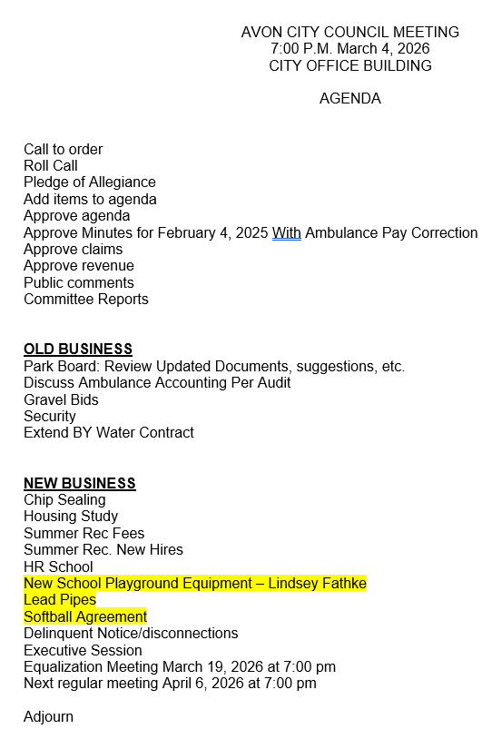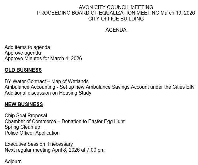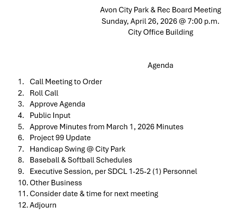 The City of Avon has now set up a text messaging system for all those who want to be reminded of the monthly Feeding South Dakota truck. Just text the word “food” to 888-429-0064 and you will receive a monthly reminder of when the truck is scheduled to be in Avon.